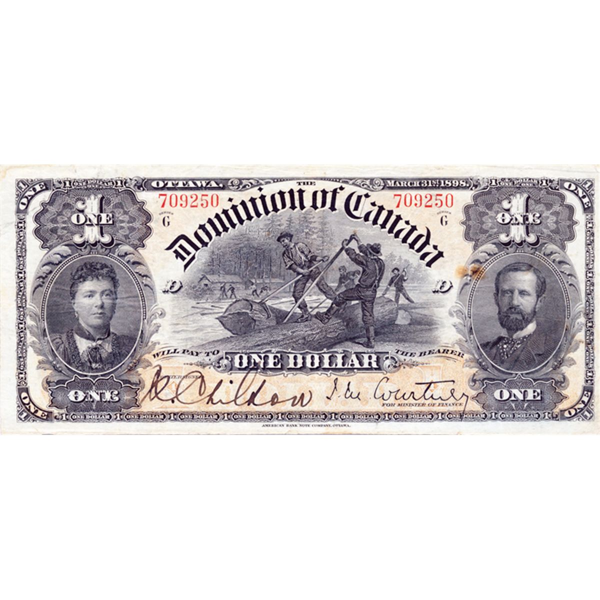 $1.00. March 31, 1898. DC-13b. Courtney. ‘ONE’s’ outward. No. 709250/D. Series ‘G’. PMG graded Very Fine-25.