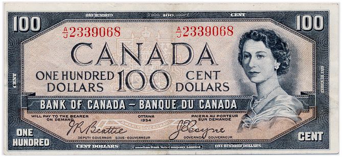 $100.00. 1954 Issue. BC-35b. Beattie-Coyne. ‘Devil’s Face’. No. A/J2339068. PCGS Very Fine-30.