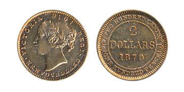 1870. Obv. port. #1. (3 Dot variety). ICCS graded AU-50. Orange-gold tone.