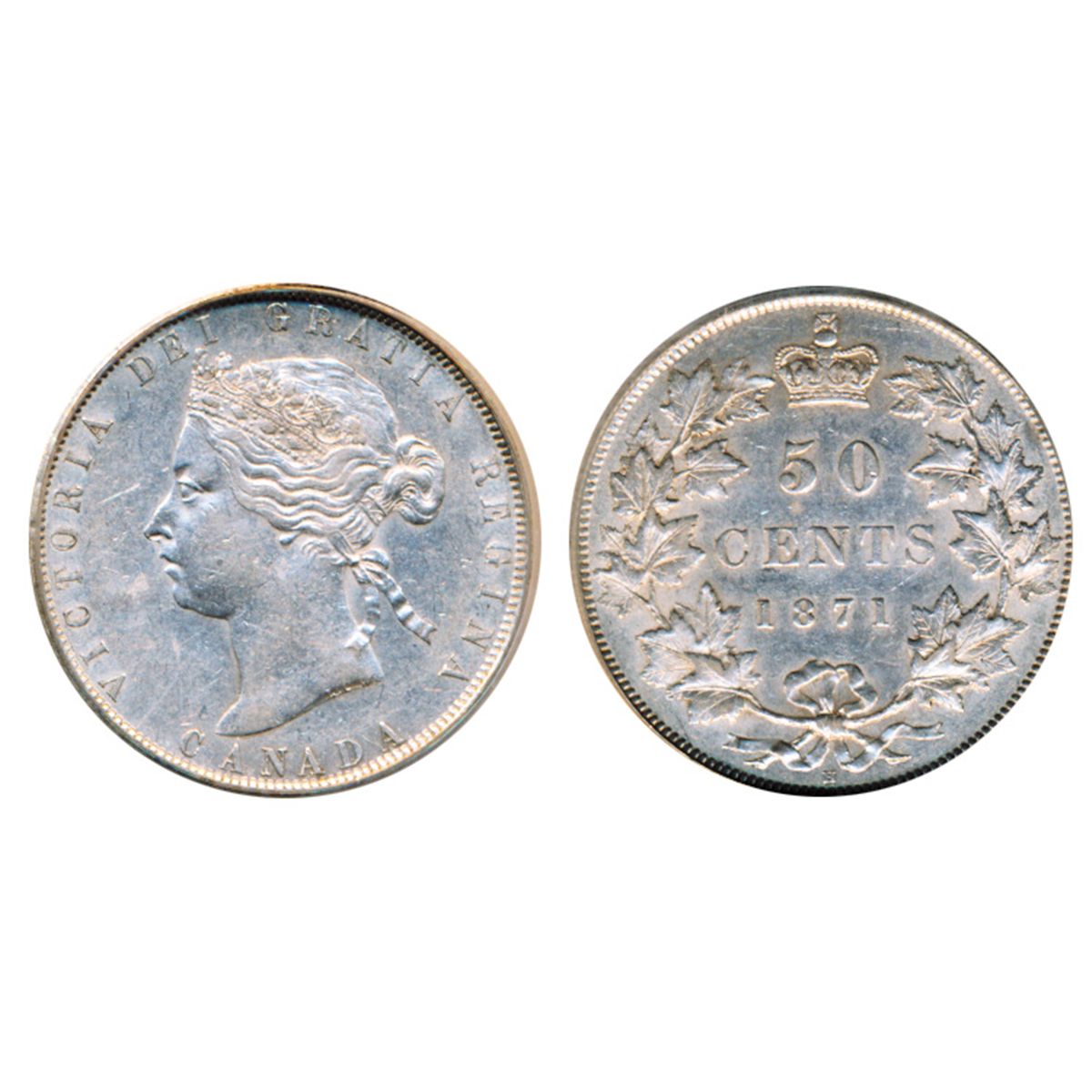 1871-H. PCGS graded AU-53. Brilliant and lustrous. A scarce high grade Victorian fifty cents piece.