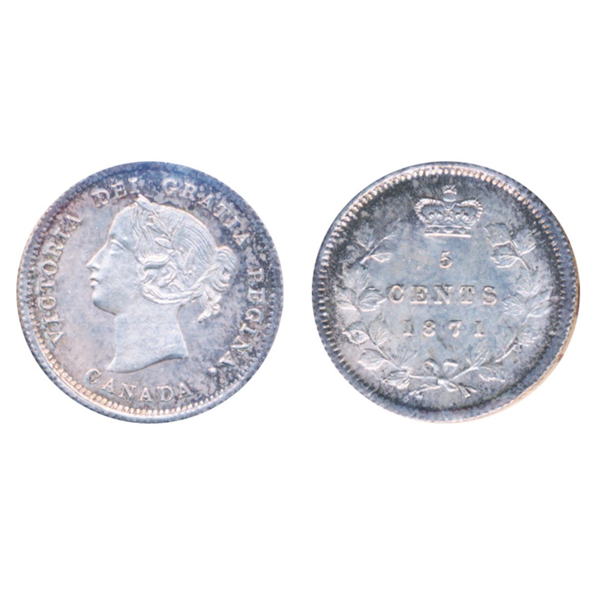 1871. ICCS Mint State-64. Light to medium heavy pale blue and sea-green toning. A choice example.