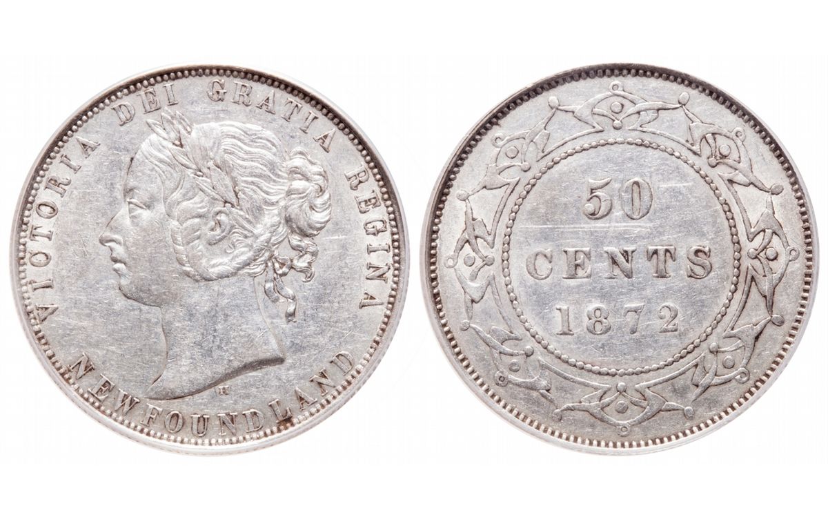 1872-H. PCGS graded AU-50. Mostly brilliant. Ex. Can. Coinoisseur. Torex auction, Oct. 28-30, 2004. Lot #765.