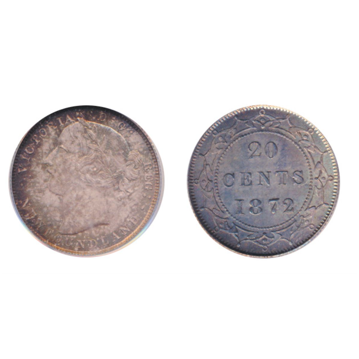 1872-H. PCGS graded Mint State-66. Exceptional satin luster under very light champagne and ivory toning, with purple highlights. Outstanding aesthetic ‘eye appeal’, with a near perfect obverse.