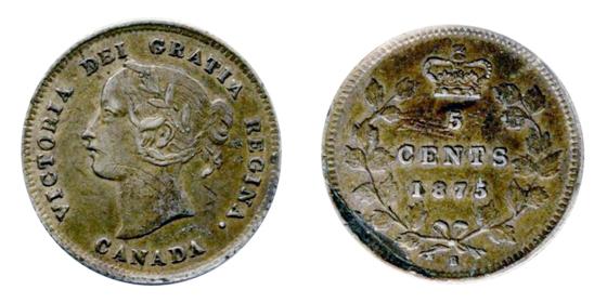 1875-H. Small Date. ICCS Very Fine-30. Medium heavy toning. Planchet flaw.