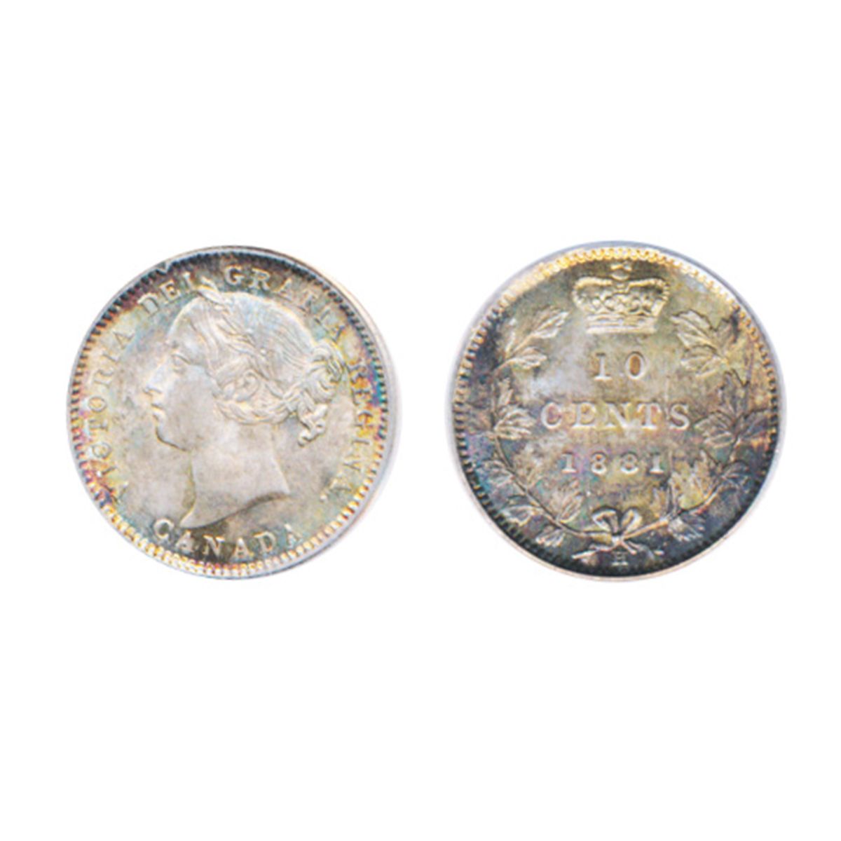 1881-H. PCGS graded Mint State-66. Lovely silver gray and rose patina, with blue highlights. Near flawless strike. Tied with two others for the ‘Finest’ graded by PCGS.