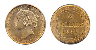 1881. PCGS graded AU-58. Brilliant orange-gold luster.