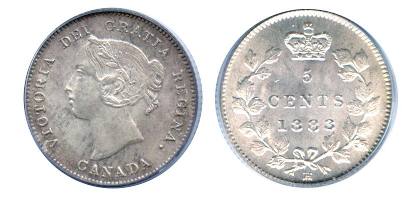 1883-H.  PCGS graded Mint State-65.  Brilliant, with highly lustrous silver surfaces and a hint of g