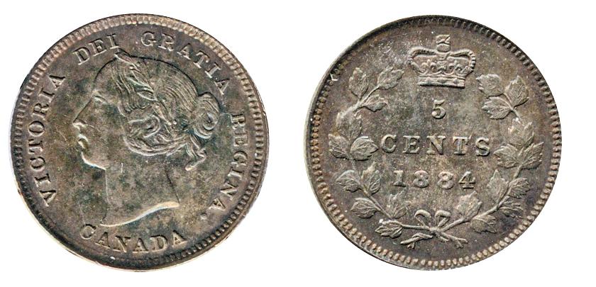 1884. Near 4. ICCS Mint State-62. Superb and attractive iridescent toning with full underlying lustre. Only three examples graded finer.