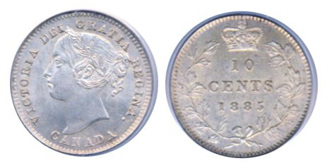 1885. Obverse port. #4. PCGS graded Mint State-64. A lustrous example with very light golden toning. Good ‘eye appeal’. A rare high grade, near Gem example.