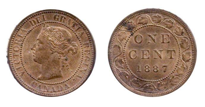 1887. ICCS Mint State-63. Red-Brown. 60% remaining, evenly distributed red luster.