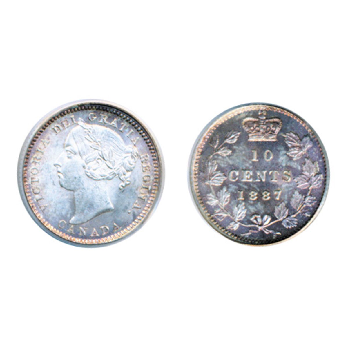 1887. PCGS graded Mint State-64. Outstanding luster. Brilliant at centers, with rose-gold accents at the peripheries. Tied with three others for the ‘Finest’ graded by PCGS.