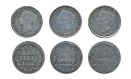 1888. Obverse port. #2. ICCS Very Fine-20. Medium heavy toning; 1890. ICCS Very Fine-30. Medium heavy toning; 1894. ICCS Very Fine-20. Medium heavy toning. Lot of three (3) coins.