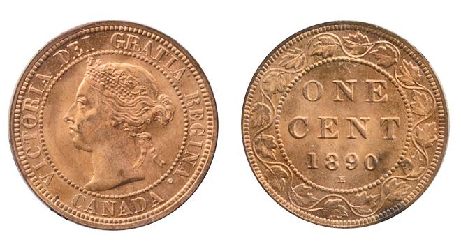 1890-H. ICCS graded Mint State-66. Red. A Premium Quality large cent. A superb Gem and one of the very finest of all dates of Canadian Victorian large cents.