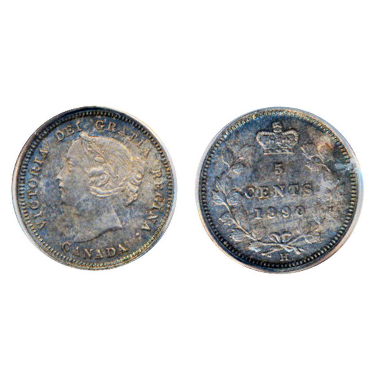 1890-H. PCGS graded Mint State-63. Full strike. Even dark amber, heavy toning, with blue highlights.