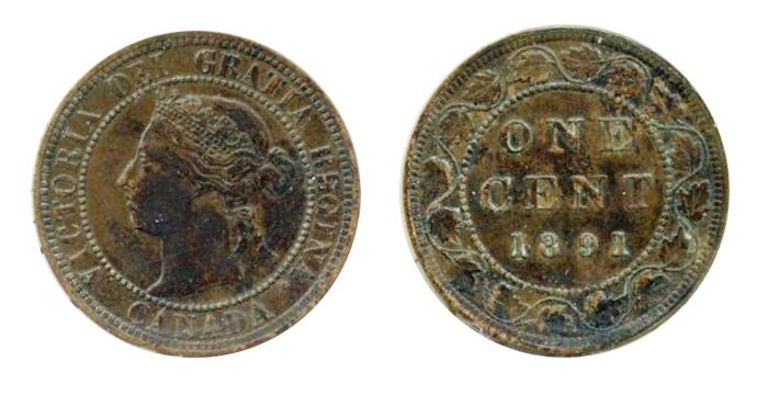 1891. Small Date, Large Leaves. Obverse port. #2. ICCS Very Fine-30. Chocolate brown.
