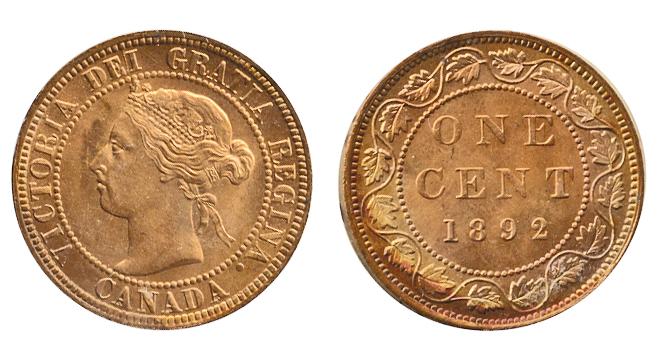 1892. Obverse port. #4. ICCS Mint State-66. 95% red luster. Great surfaces. Excellent strike. Superb 'eye appeal'.