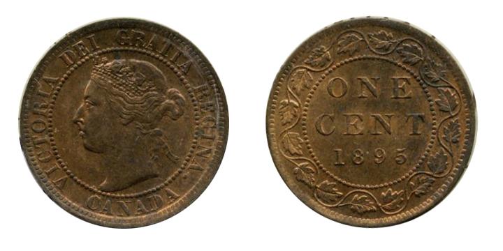1895. ICCS Mint State-64. Red-Brown. 40% even red luster.