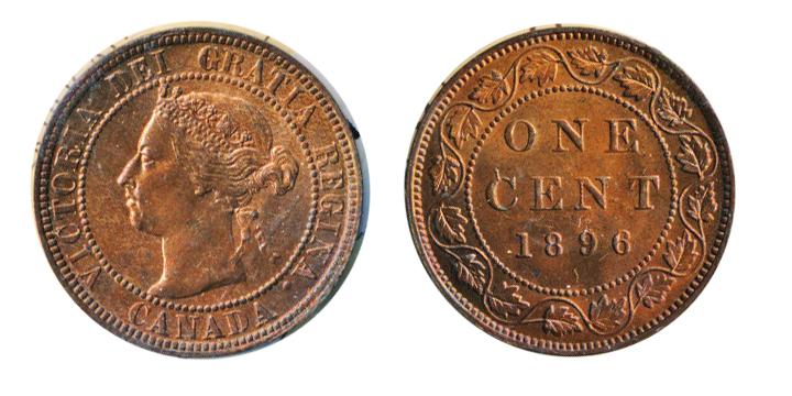 1896.  ICCS Mint State-63. Red and Brown.  50% remaining luster.