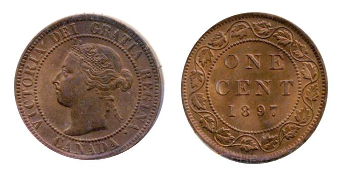 1897. ICCS Mint State-62. Red-Brown. 20% luster on obverse. 50% red luster on reverse.