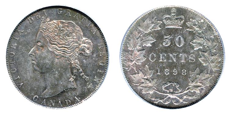 1898. PCGS graded Mint State-63. Superb toning and outstanding 'eye appeal'. A rare date in choice uncirculated condition.