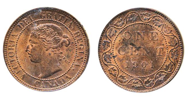 1901. ICCS Mint State-63. Red. 80% red luster.