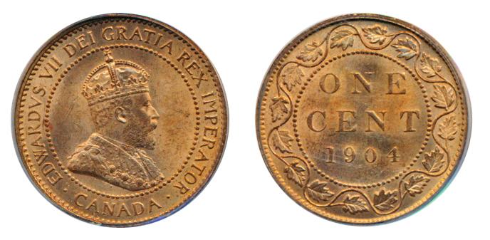 1904. PCGS graded Mint State-64. Red. 80% red luster. Ex, Pittman collection.