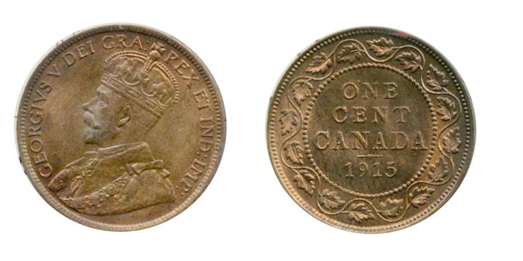 1915. ICCS Mint State-64. Red-Brown. 75% red luster.