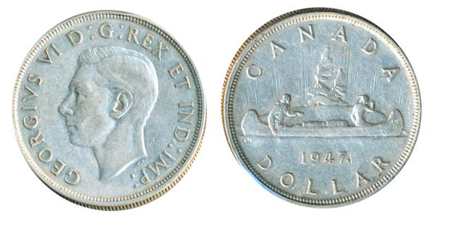 1947. Blunt 7. Very Fine-20; 1947. Maple Leaf. Two 'H.P.' variety. Very Fine-20. Lot of two (2) lightly toned dollars.