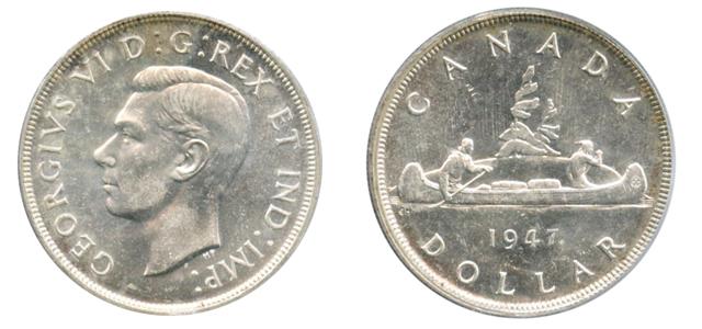 1947. Maple Leaf. Two 'H.P.' variety. PCGS graded Mint State-62. Brilliant, with a touch den toning.