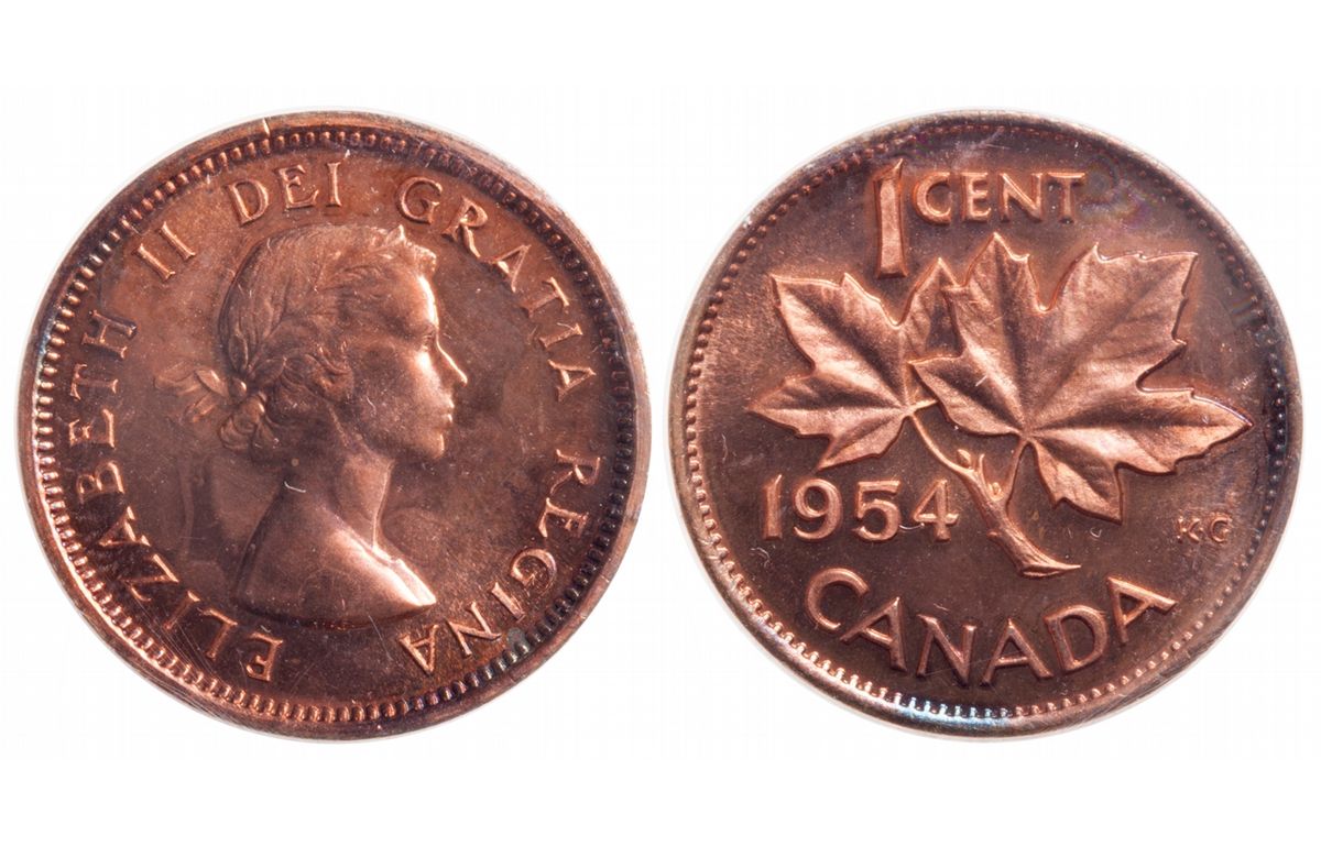 1954. N.S.F. ICCS Proof-Like-64. Red. 60% somewhat mottled toning.