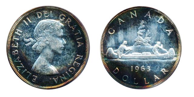 1958. ICCS Proof-Like-65. 'Cameo'. Brilliant; 1963. ICG graded Proof-Like-67. 'Cameo'. Medium heavy toning. Lot of two (2) dollars.