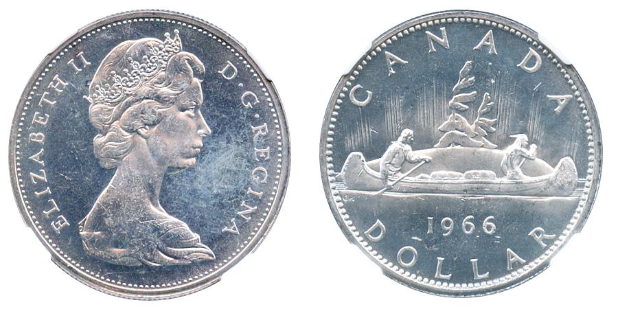 1966. Small Beads variety. NGC graded Mint State-64. A brilliant example, with reflective fields.