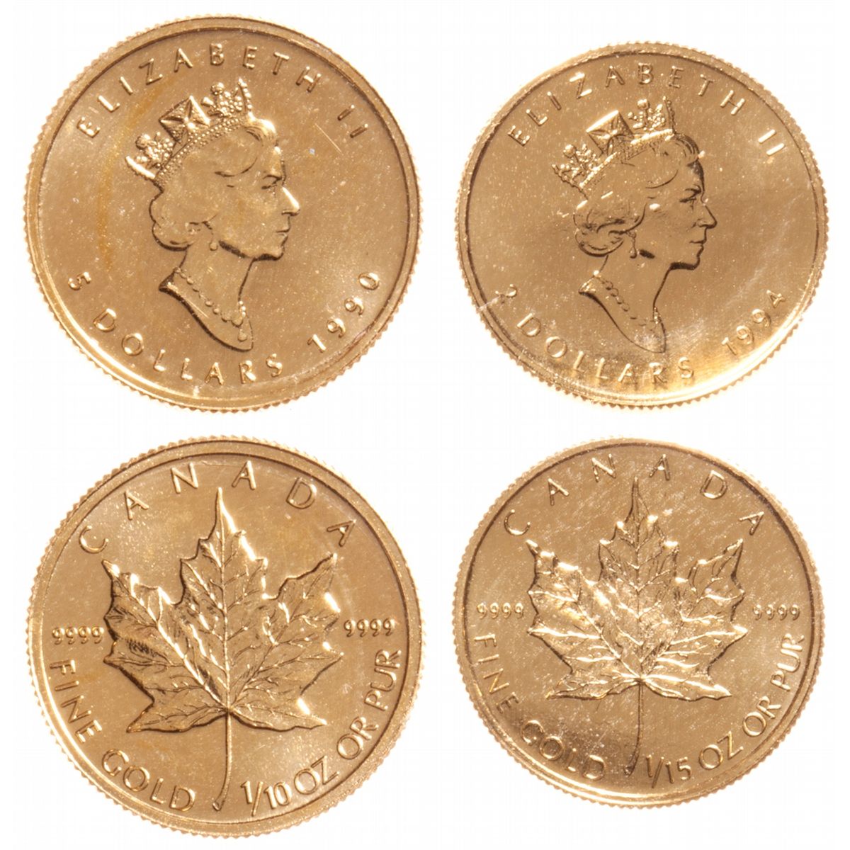 $2.00. 1994. (1/20 oz). Bent; $5.00. 1990. (1/10 oz). Both in mint pliofilm. Both bullion issues.