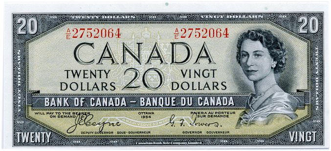 $20.00. 1954 Issue. BC-33a. Coyne-Towers. ‘Devil’s Face’. No. A/E0275064. PCGS graded Ch. Unc-63. PPQ.