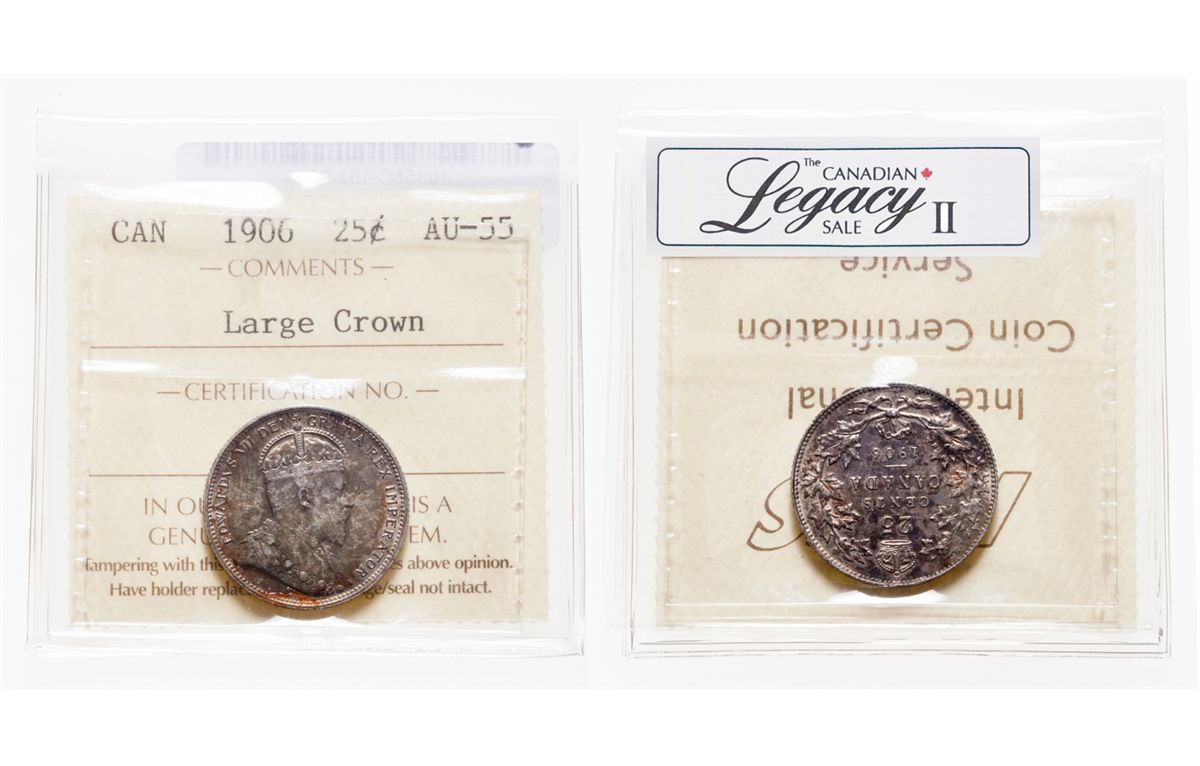 1906. ICCS graded Choice About Uncirculated-55 Large Crown.