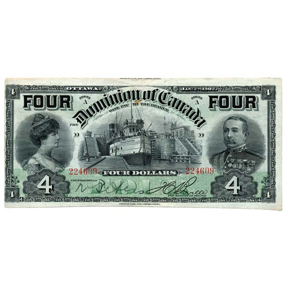 $4.00. Jan. 2, 1902. DC-17b. ‘FOUR’s. Boville. No. 224609/D. A good Very Fine.