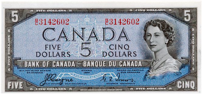 $5.00. 1954 Issue. BC-31a. Coyne-Towers. ‘Devil’s Face’. No. B/C3142602. PCGS graded Unc-63. PPQ.