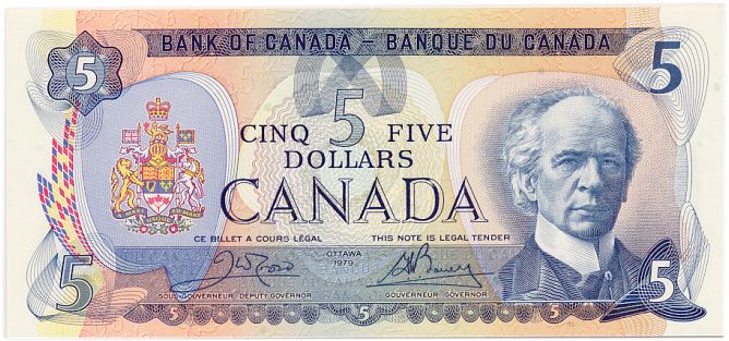 $5.00. 1979 Issue. BC-53bA. Crow-Bouey. No. 31003856687. PCGS graded Unc-65. PPQ.