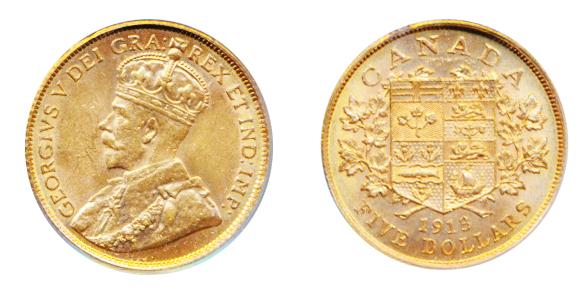 $5.00 Gold. 1913. PCGS graded Mint State-63. Brilliant and lustrous yellow-orange luster.