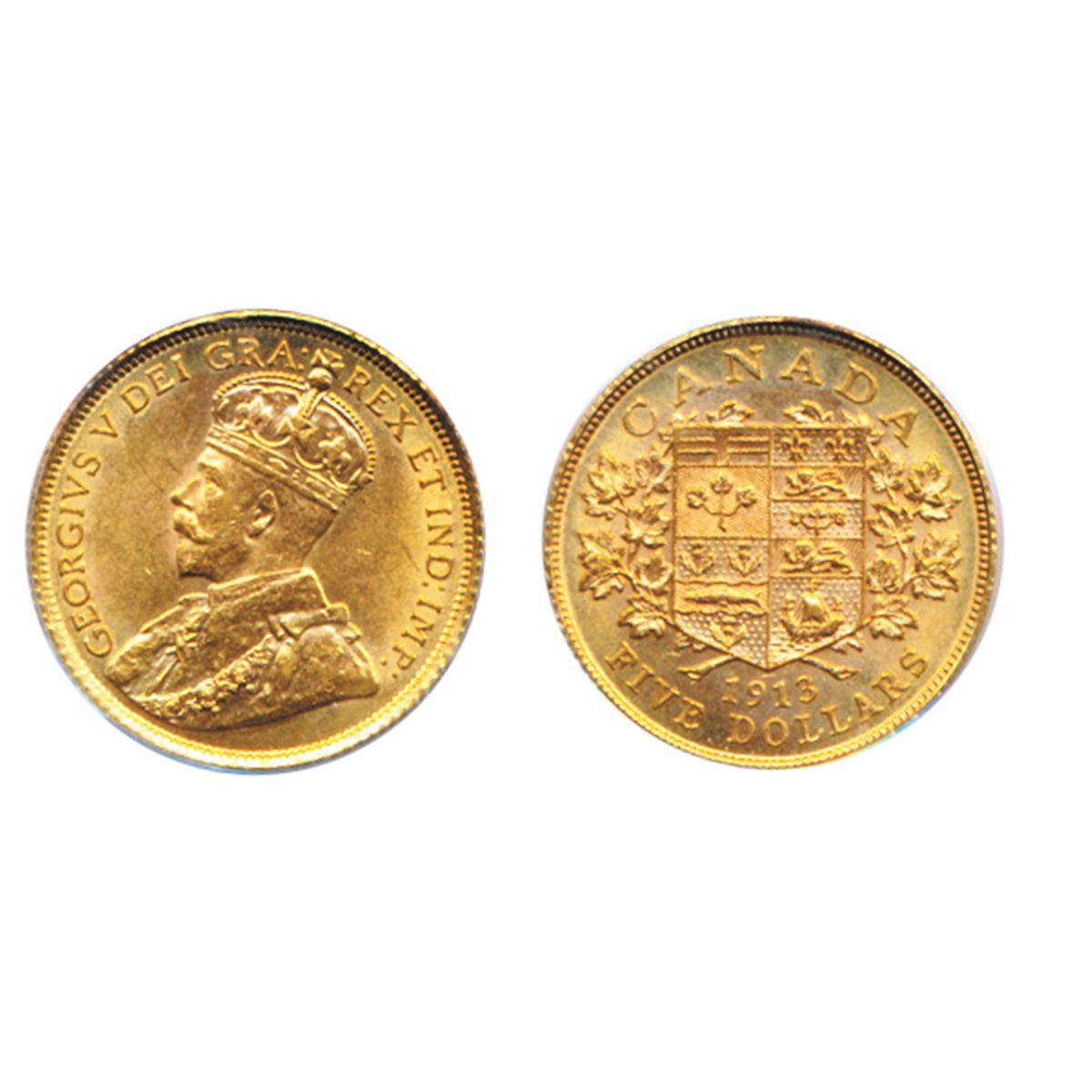 $5.00 Gold. 1913. PCGS graded Mint State-63. Brilliant golden luster.