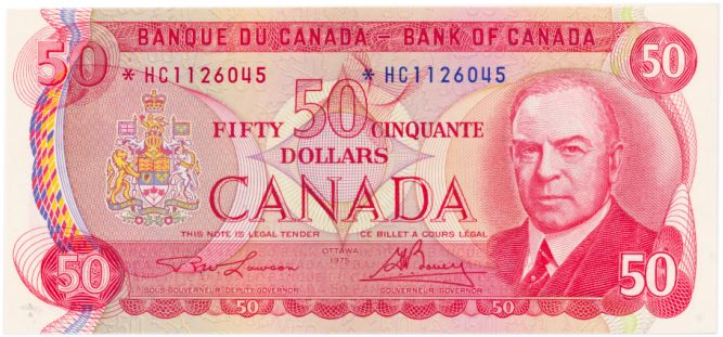$50.00. 1975 Issue. BC-51aA. No. *HC1126045. Lawson- Bouey. PCGS graded Ch. Unc-64. PPQ.