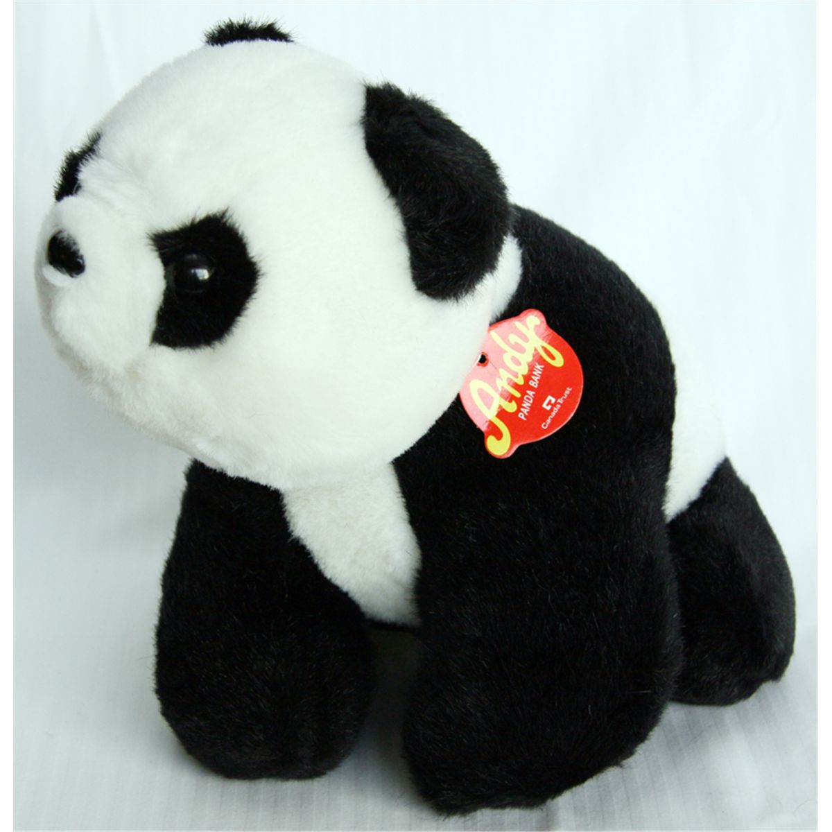 ANDY PANDA BANK by CANADA TRUST. A stuffed Panda Bear toy bank. Coin slot on top. 21cm x 24cm x 29cm. Fake fur. New.