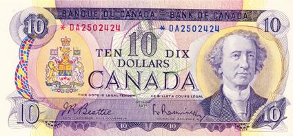 BANK OF CANADA. $10.00. 1971 Issue. BC-49aA. No. *DA2502424. PCGS graded Choice Unc-64. PPQ.