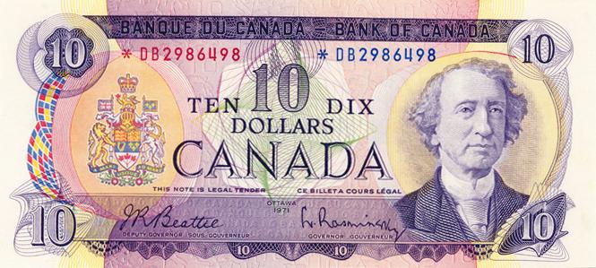 BANK OF CANADA. $10.00. 1971 Issue. BC-49aA. No. *DB2986498. PCGS graded AU-53. PPQ.
