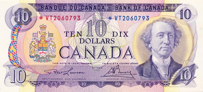 BANK OF CANADA. $10.00. 1971 Issue. BC-49cA. No. *VT2060793. PCGS graded CH AU-58. PPQ.