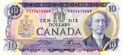 BANK OF CANADA. $10.00. 1971 Issue. BC-49dA. No. EDX2610643. A rare, steel engraved issue. PCGS graded Choice AU-55.