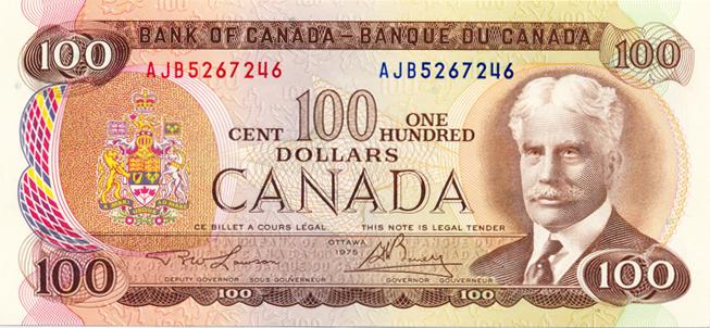 BANK OF CANADA. $100.00. 1975 Issue. BC-52a-i. Lawson-Bouey. No. AJB5267246 & AJB5267247. Both CCCS graded Choice Unc-64. Lot of two (2) consecutive notes.