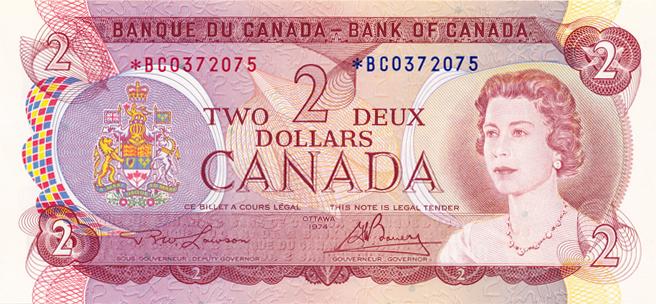 BANK OF CANADA. $2.00. 1974 Issue. BC-47aA. Lawson-Bouey. No. *BC0372075. PCGS graded Gem Unc-65. PPQ.