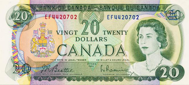 BANK OF CANADA. $20.00. 1969 Issue. BC-50a. No. EF4420702 & EF4420703. Both BCS graded original Unc-60.