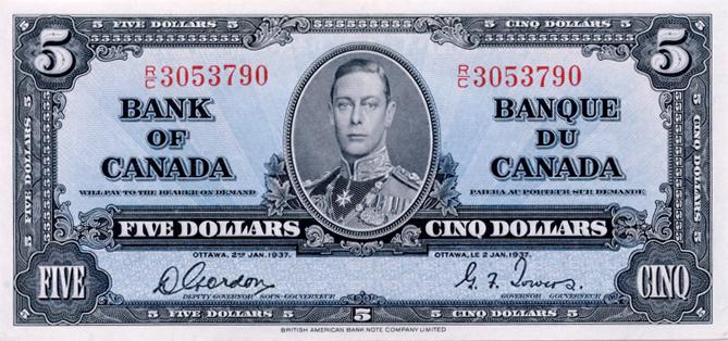 BANK OF CANADA. $5.00. BC-23b. Gordon-Towers. No. R/C3053790. Choice Unc-63.
